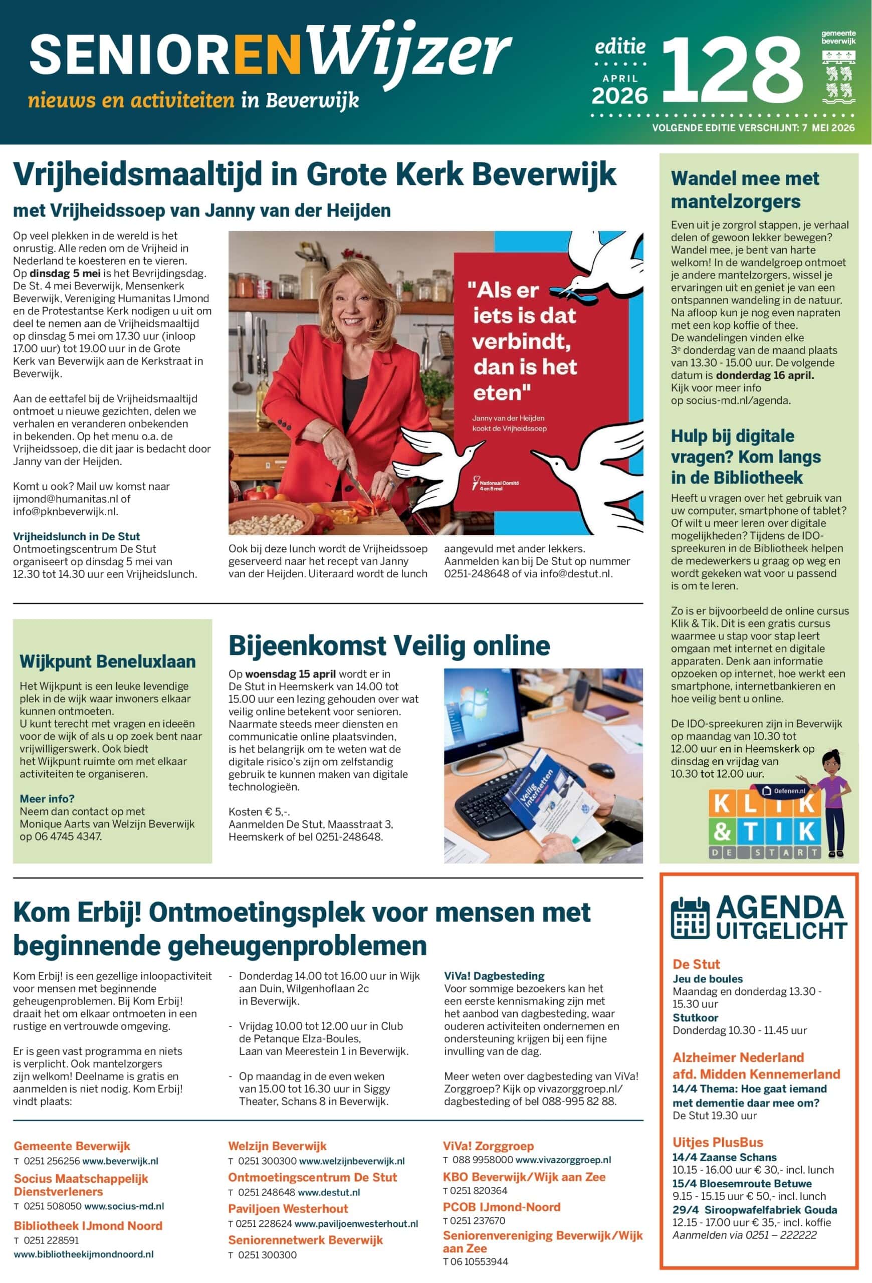 Er is weer een nieuwe Seniorenwijzer! Elke maand vindt u in weekblad De Beverwijker de Seniorenwijzer. Een pagina vol met nieuws en activiteiten, informatie en ontwikkelingen op het gebied van zorg en welzijn voor u, uw kinderen, buren en mantelzorgers.